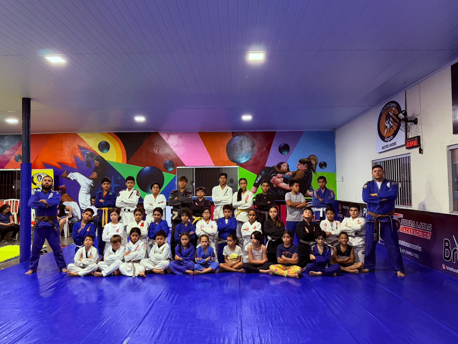 A associação oferece aulas de Jiu-Jitsu e Capoeira, formando cidadãos com disciplina e valores.